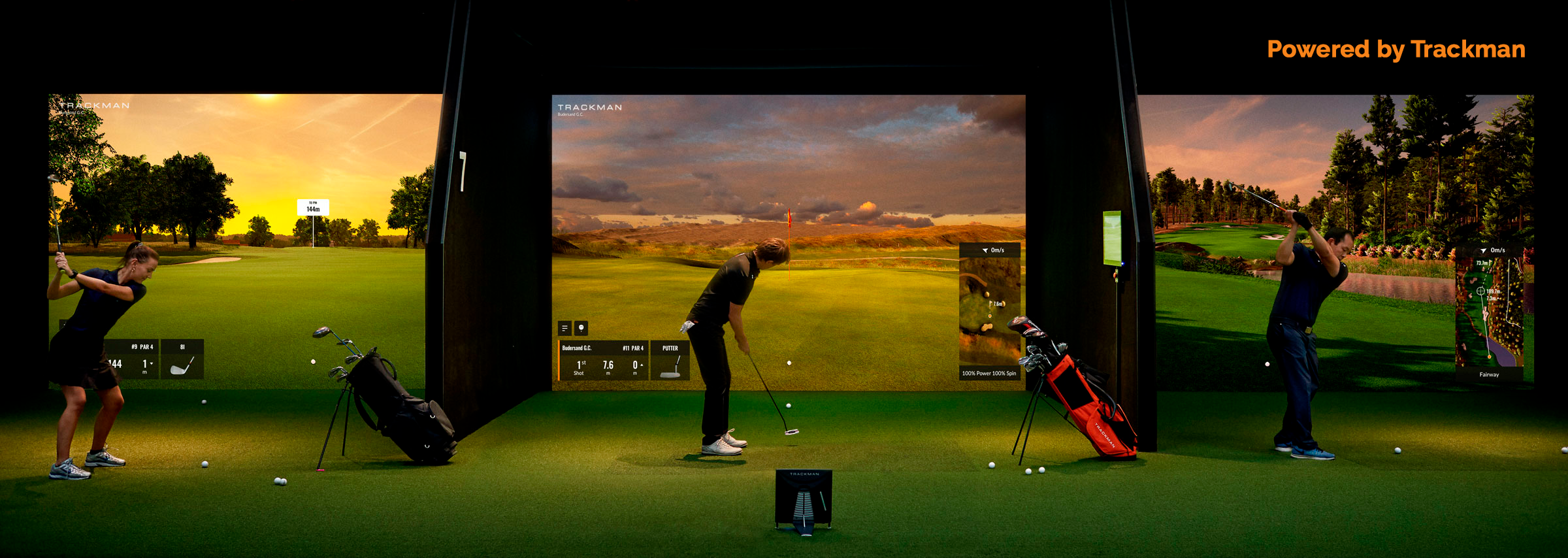 - Alle innstillinger (banelengder, spilleforhold, mykhet på greenene osv, er forhåndsprogramert, og blir automatisk riktig når man logger seg inn på turneringen).